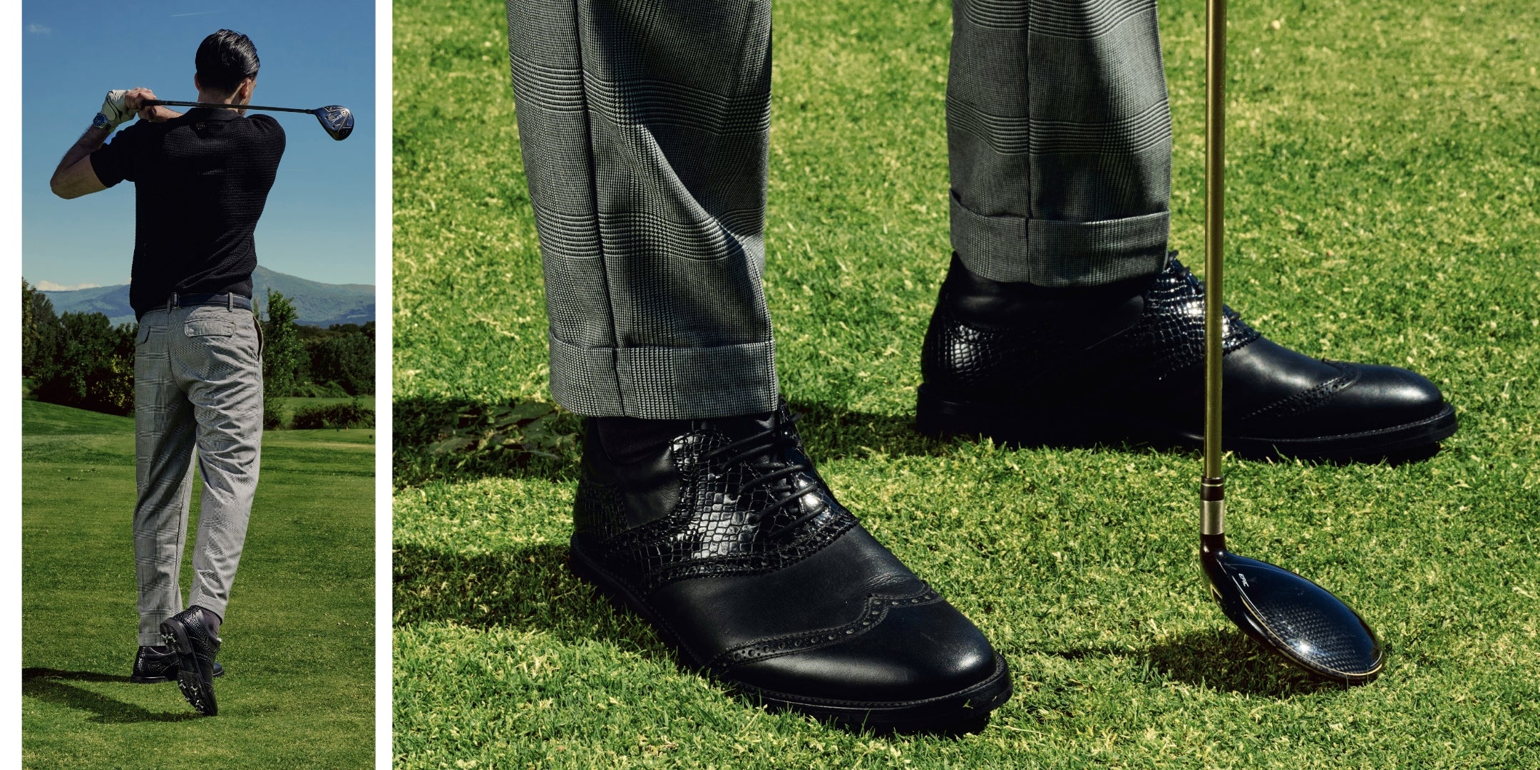 Golfschuhe schwarzes Leder handgefertigte Brogue Details
