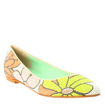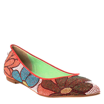 - Damenballerina mit farbigem Blumenmuster und Strassapplikation