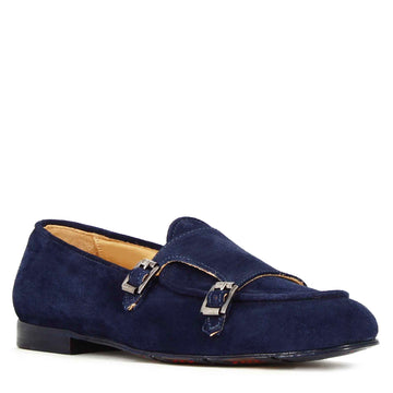 Blauer wildleder-mokassin für Herren mit doppelter schnalle