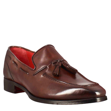 Herrenmokassin aus braunem Leder mit Quaste und quadratischer Zehe