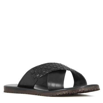 Black woven leather
