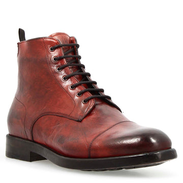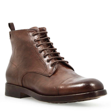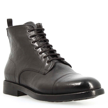 Men's black premium leather cap toe ankle boot