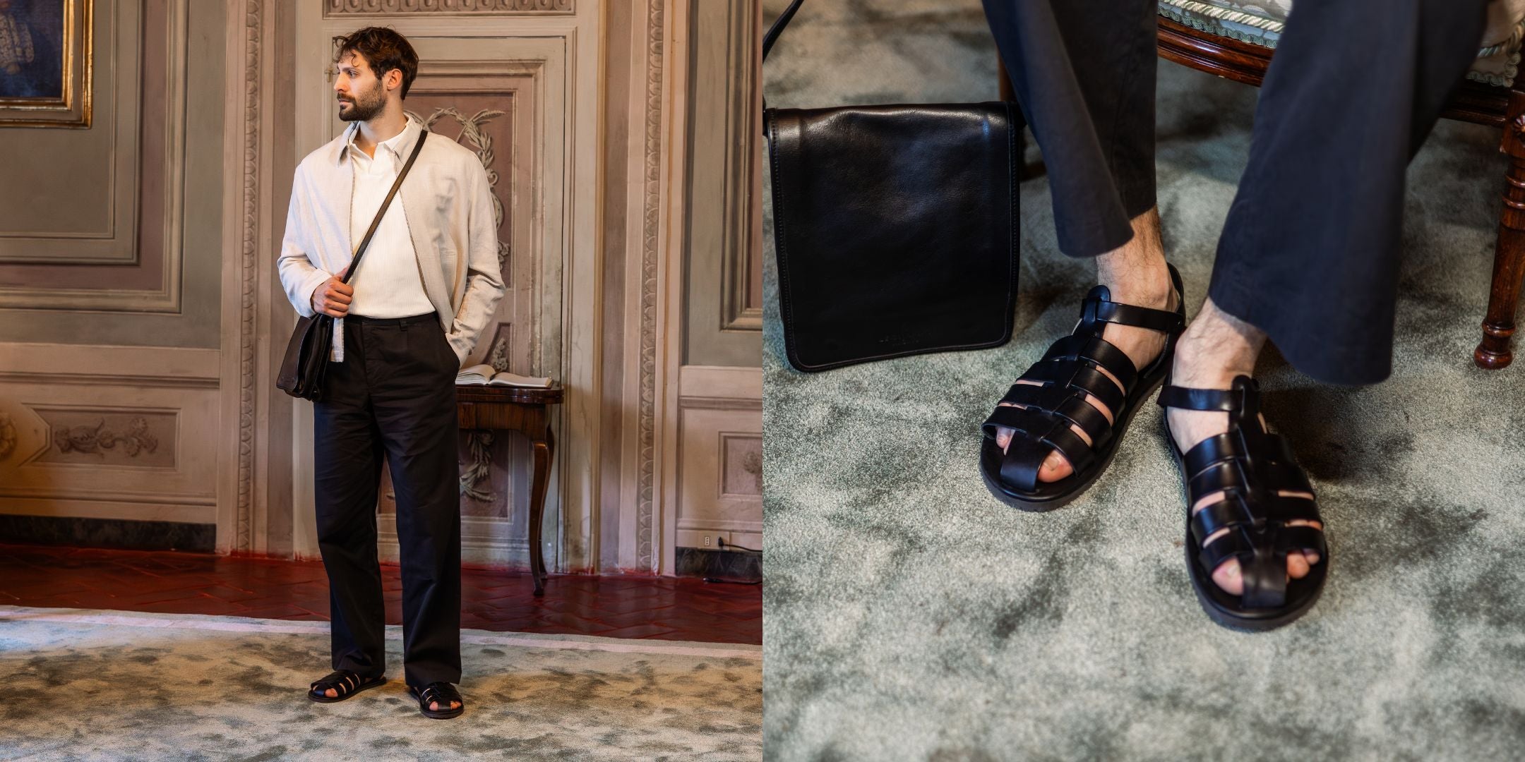 Men H Shaped Sandals in Dark Brown Printed Leather