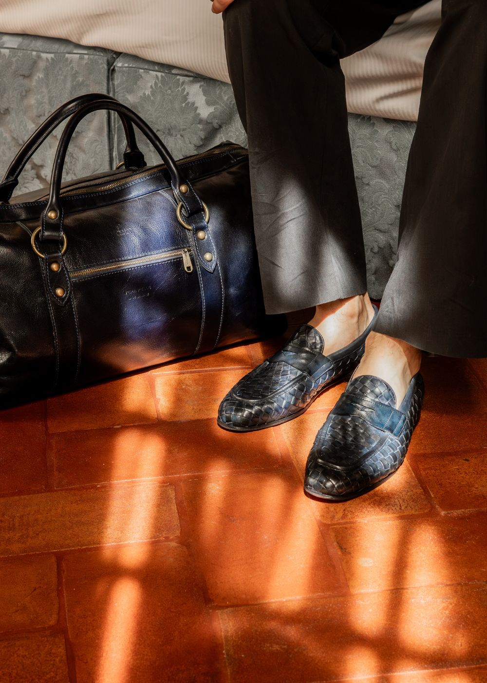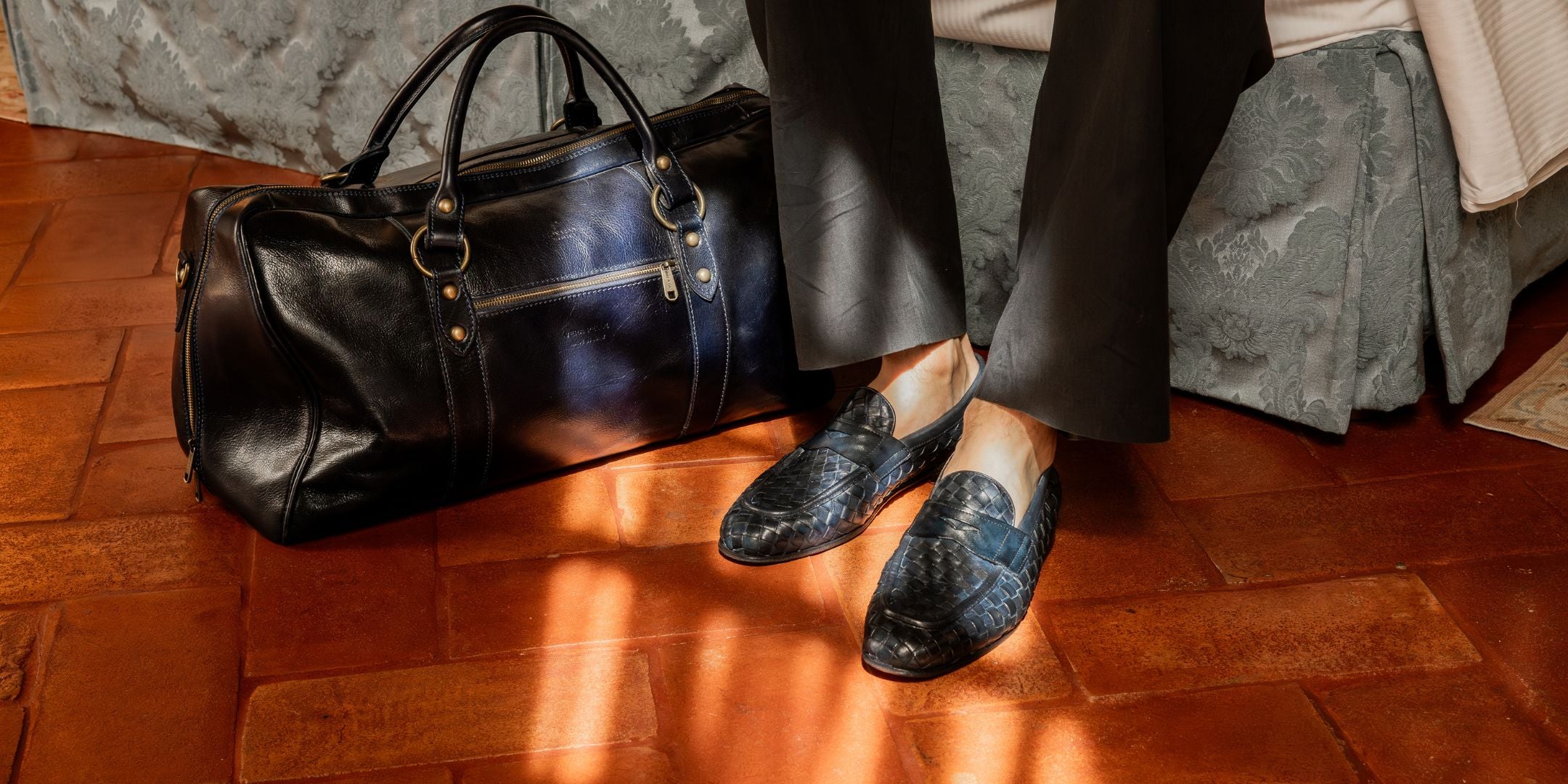 Novello Men's Moccasin in Dark Brown Woven Leather