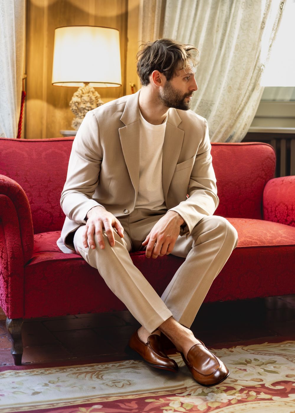 Men's casual handmade moccasin in brown leather with rubberised sole