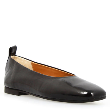 The Venere ballerina in brown, crinkled, glossy leather is synonymous with understated elegance and functionality. The square toe adds a contemporary touch, ideal for those seeking a refined yet versatile shoe.