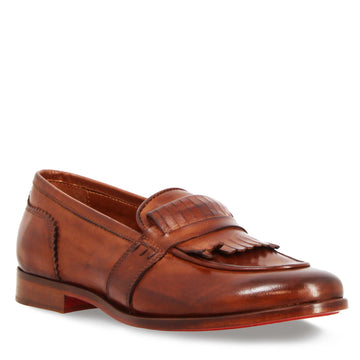 Handmade Brown Leather Women's Loafers with Fringe