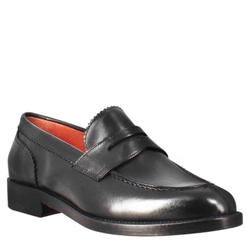Women's moccasin with lion's mouth in black leather