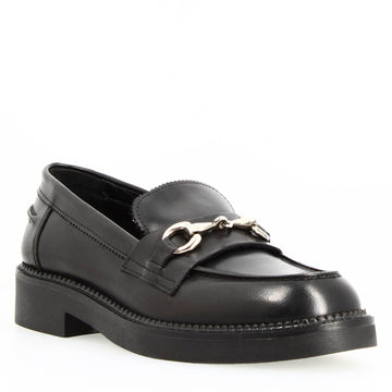 Women's loafer with sturdy sole in dark brown leather and buckle