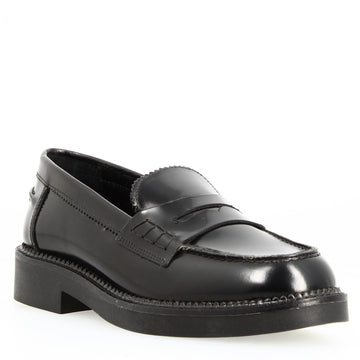 The Domitilla20 moccasin reinterprets the classic college style with a modern and comfortable twist. Crafted from black brushed leather , it boasts elegant highlights and a simple, buckle-free design for unparalleled versatility.