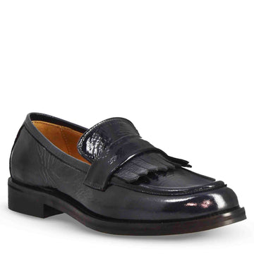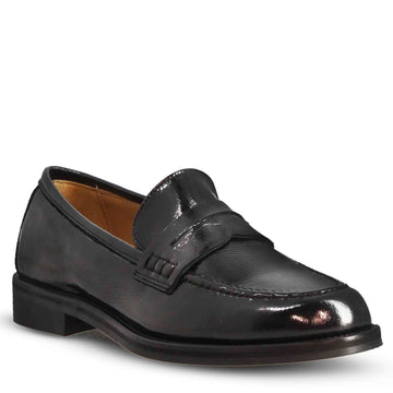 Elegant women's moccasin in black shiny leather handmade in Italy