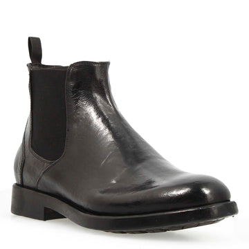 Handcrafted in Italy from the highest quality black buff leather , this elegant and versatile shoe is perfect for formal outfits or contemporary business looks. The thick leather sole , with non-slip injected rubber , ensures grip and durability. The sole is stitched to the upper using the Blake system. The rear pull tab adds a functional and modern touch, making it easy to put on.