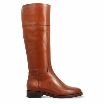 Stivale artigianale al ginocchio da donna in pelle marrone