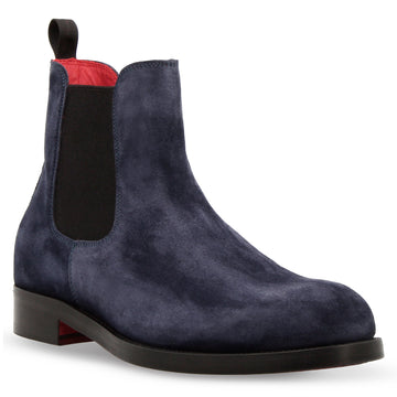 Stivaletti da uomo Chelsea in pelle scamosciata blu suola in cuoio