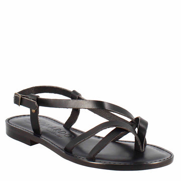 Sandales pour femmes Solace de style romain antique en cuir noir