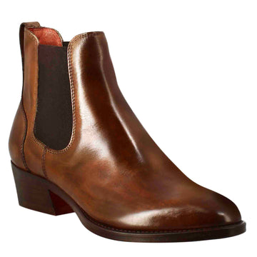 Bottine Chelsea lisse pour femme à talon moyen en cuir marron