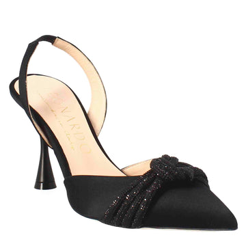 Décolleté da donna in raso nero con accessorio fatto a mano in Italia
