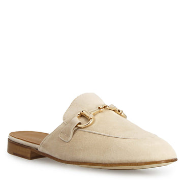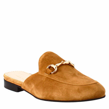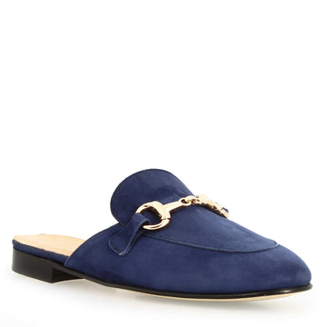 Sabot da donna in pelle scamosciata celeste con fibbia oro