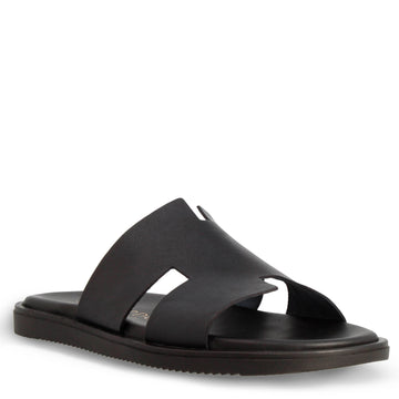 Sandali uomo a H in pelle stampata colore marrone fatti a mano