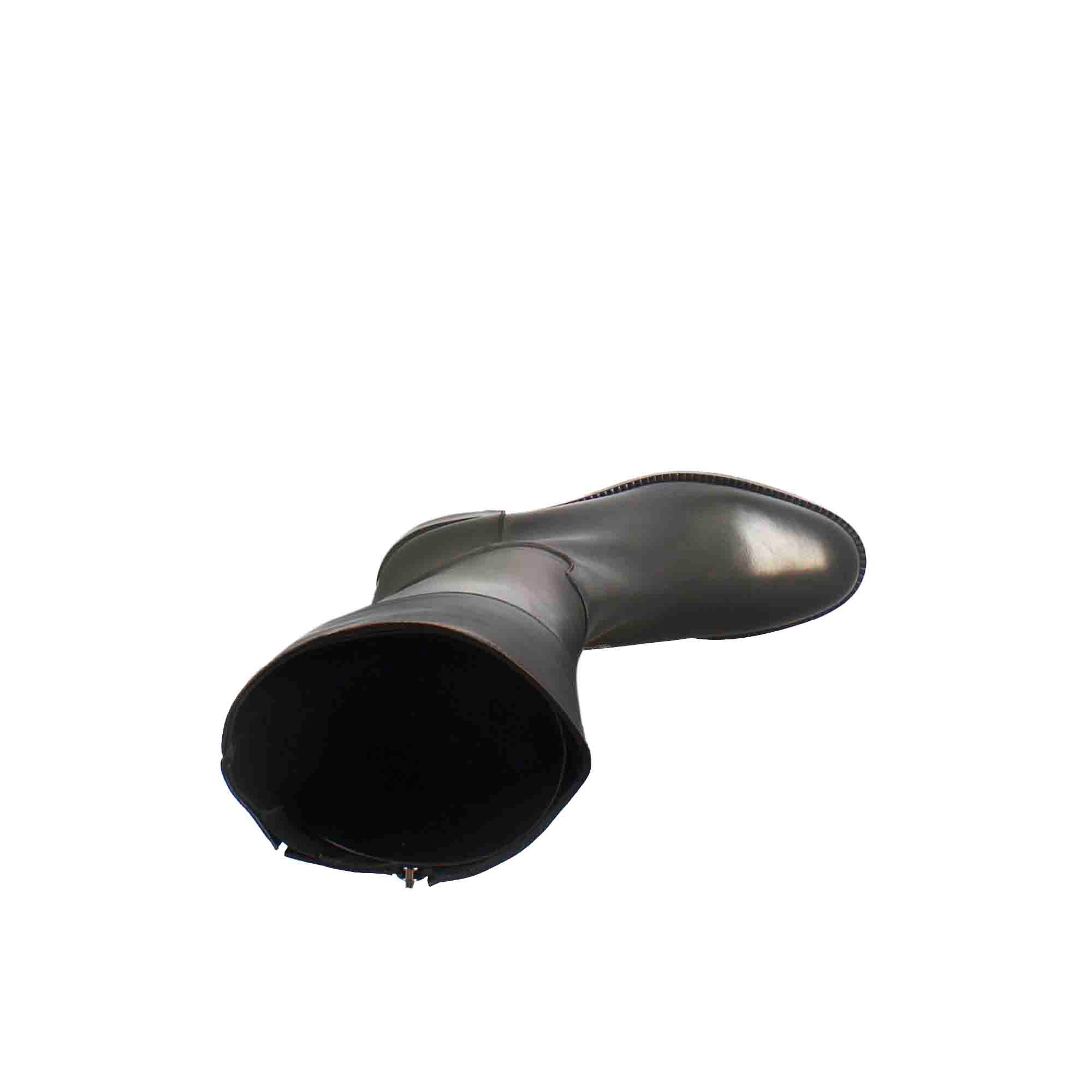 Stivale al ginocchio da donna liscio con tacco basso in pelle verde e nero