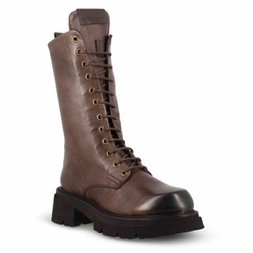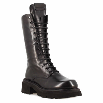 Stivaletto anfibio da donna in vera pelle colore nero con allacciatura