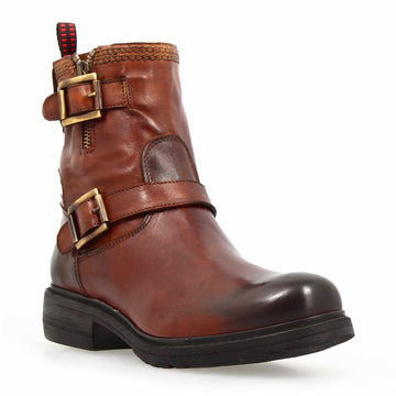 Stivaletto da donna con doppia fibbia in vera pelle colore nero