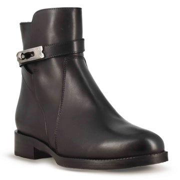 Stivaletto da donna in pelle colore nero con fibbia decorativa alla caviglia